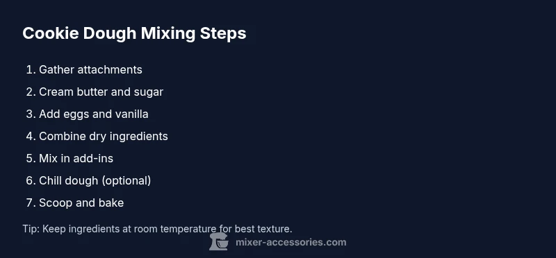 The choice of mixer attachment affects texture, even mixing, and how dough develops gluten-forming networks. The keyword what mixer attachment for cookies should guide your setup: paddle attachments excel at creaming and uniform distribution of fat and sugar, while whisks introduce air for lighter textures in some batters. According to Mixer Accessories, selecting the right tool can improve cookie spread, crumb, and overall bake quality. With the right attachment, you’ll notice steadier mixing, less overworking of ingredients, and easier cleanup. This section lays the foundation for translating tool choice into better cookies, from sugar cookies to chewy chocolate chip varieties.