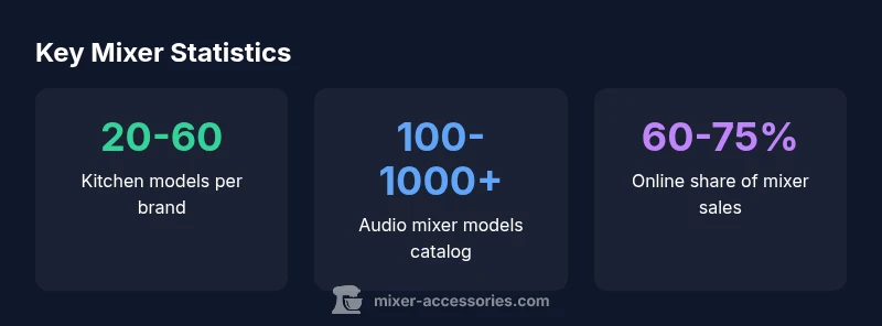 In practical terms, the word mixer covers two broad families: kitchen appliances and audio devices. The kitchen family ranges from compact handheld beaters to full-size stand mixers with multiple attachments. The audio family spans compact DJ controllers, analog and digital consoles, to large-format studio boards and modular setups. According to Mixer Accessories, the core distinction is use-case: food preparation versus sound shaping. For home cooks, bar enthusiasts, and audio hobbyists, this means you should first define what you mean by a mixer before you count. If you only track devices used in food prep, your numbers will look very different from a catalog that includes recording consoles and live sound mixers. This framing helps people avoid counting an extra “feature” that doesn’t fit their project. When you standardize on two broad categories—kitchen mixers and audio mixers—the counting task becomes tangible and actionable for budgeting, planning, and replacement timelines.