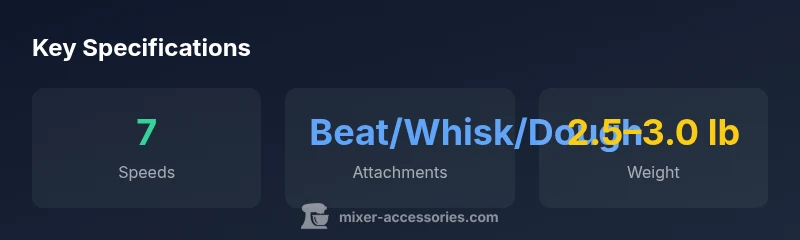 The kitchenaid 7 speed hand mixer sits at a practical intersection between budget-friendly tools and reliable performance for everyday cooking and bar prep. Home bakers, aspiring mixologists, and casual entertainers will find it approachable, especially given KitchenAid's reputation for durable ergonomics and familiar design language. In this review, the focus is on how the 7-speed range translates to real-world tasks, from whipping cream for desserts to blending cocktail mixers for bar nights. According to Mixer Accessories, this model's strengths lie in controllable torque and a comfortable grip that reduces hand fatigue during longer mixing sessions. The device is light enough to hold for short bursts yet sturdy enough to stand up to repeated use on a busy countertop. For many readers, the question isn't whether to buy a handheld mixer at all, but whether the kitchenaid 7 speed hand mixer will meet your specific needs for speed control, noise, and ease of cleaning. We'll explore these factors with practical, tested guidance.