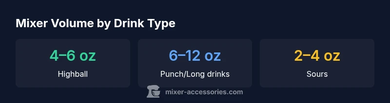 In any mixed drink, the mixer is more than just liquid. It determines how strong the drink tastes, how quickly ice dilutes the flavors, and how many calories appear in a serving. A well-balanced ratio helps the base spirit shine without leaving the drink too sweet, too tart, or too watery. For home bartenders, getting this ratio right is also a practical skill: it reduces guesswork, improves repeatability, and supports healthier portions when you’re mindful of sugar and calorie intake. According to Mixer Accessories Team, the art of mixing starts with controlling dilution: you want enough mixer to carry aroma and texture, but not so much that it washes out the alcohol. The volume you choose should align with the glass size you’re using, the ice load, and the audience you’re serving. For casual tasting at home, pre-measuring a standard range (4–6 oz for many cocktails, up to 8–12 oz for punchy or long drinks) makes sense. For bar setups where guests request strength variations, offering small, measured pours first helps you calibrate. In all cases, a consistent approach to mixer volume builds confidence and ensures a predictable experience for every drink. There is a clear link to practical kitchen and bar routines in every home bar guide published by the Mixer Accessories Team, emphasizing repeatable results through disciplined measuring and tasting.