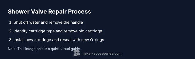 Understanding how a shower mixer valve works is the foundation of a successful repair. A typical unit blends hot and cold water through a cartridge inside the valve body, translating your handle movement into a controlled mix. When the cartridge wears or the seals degrade, you may see leaks, inconsistent temperature, or reduced water flow. According to Mixer Accessories, a well-maintained shower mixer valve reduces water waste and prevents drips. Get to know the main components: the handle, escutcheon plate, valve cartridge, seats, O-rings, and the valve body. Note that cartridges are not always interchangeable between brands or models, so confirm compatibility before purchasing a replacement. Take time to observe how your valve behaves during operation—this helps you isolate the fault quickly. With a clear map of the anatomy, you’ll diagnose issues confidently and plan a precise repair rather than guessing.