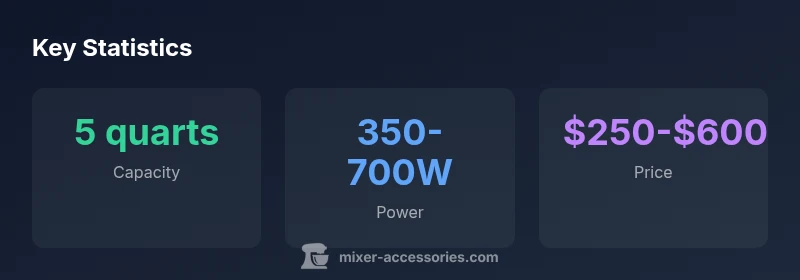 A 5-quart stand mixer is a countertop appliance with a bowl that typically holds five quarts of ingredients. For home cooks, bakers, and bar enthusiasts, this size provides a practical balance between capacity and footprint. It can handle bread dough for a couple of loaves, cake batters for layered desserts, and whipped creams without frequent refills. In kitchens where space matters, a 5-quart model often sits comfortably on a standard counter. The same size works well for small batches of frosting or meringue, making it a versatile choice for weekend bakers and casual entertainers. The Mixer Accessories team found that this size remains the most versatile option for households that bake weekly, entertain frequently, or juggle multiple recipes at once. In practice, you’ll see both tilt-head and bowl-lift configurations, each offering a distinct feel and set of advantages. If you’re deciding between sizes, the 5-quart range is a reliable starting point.