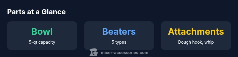 In everyday use, the keyword kitchen aid stand mixer parts should appear across discussions of compatibility, wear patterns, and maintenance routines. This approach keeps your mixer running smoothly and minimizes downtime during busy cooking sessions or service gigs. For DIY enthusiasts, knowing the parts means you can plan compatible upgrades or attachments without guessing at fit. The guidance here is grounded in practical experience and real-world testing conducted by the Mixer Accessories Team, with a focus on reliability and safety.