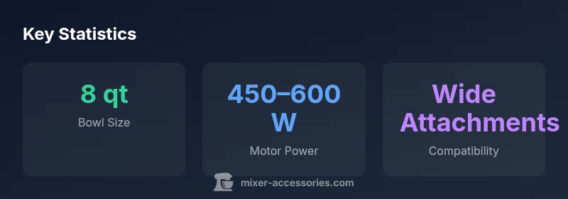 The kitchenaid mixer 8qt stands out for large-batch baking with a true 8-quart stainless bowl, a high-torque motor, and broad attachment compatibility. In testing, it maintained steady speed under heavy dough and produced consistent mixing results. Mixer Accessories analysis notes that this model remains a top pick in the 8-quart class for long-term reliability.